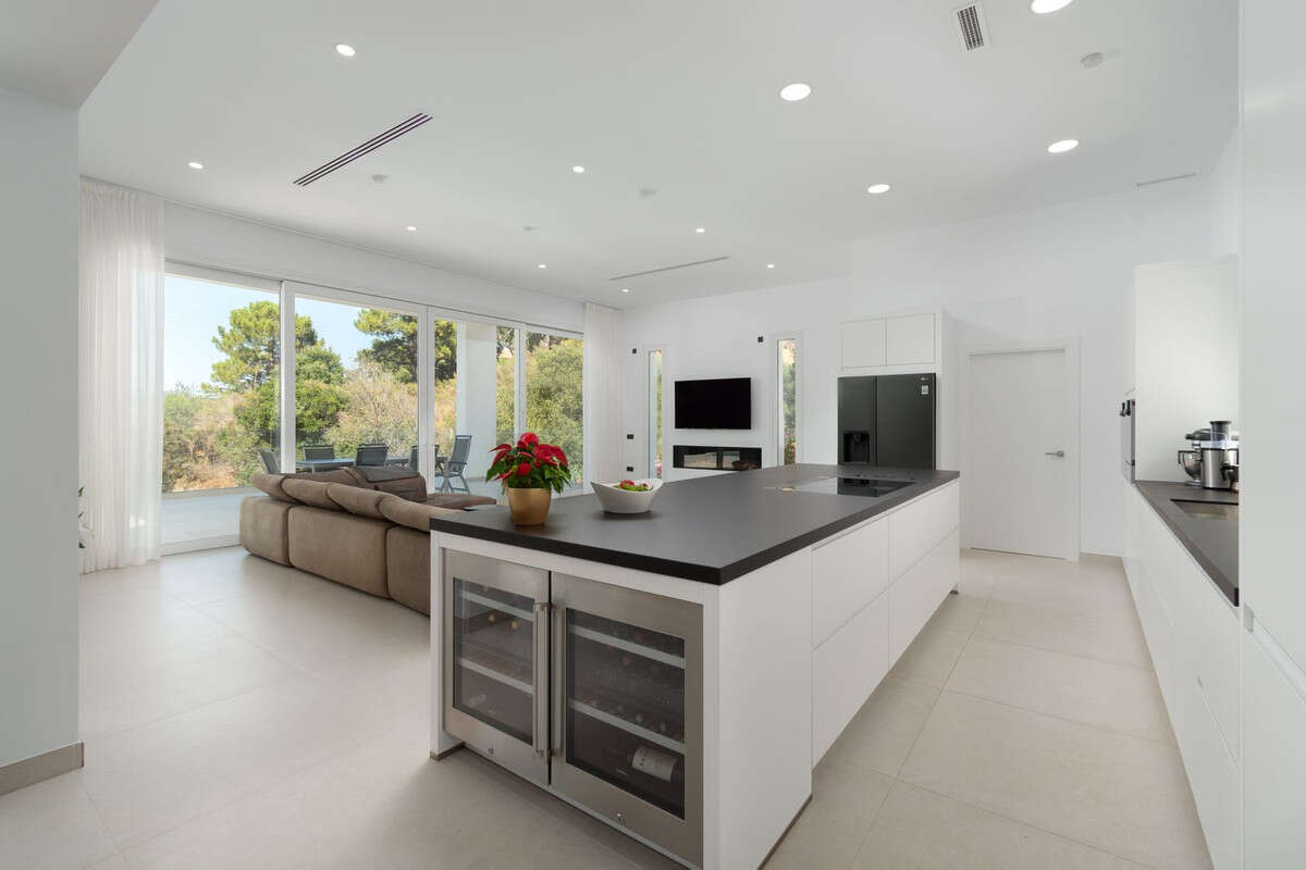 With 328 m² of built space on a generous 2,621 m² plot, the property has been designed to maximize light, comfort and connection with nature. The spacious interiors include three bedrooms, two with en-suite bathrooms, plus a third full bathroom. The open-plan kitchen integrates seamlessly with the spectacular double-height living area, creating an impressive central space for everyday life and entertaining.