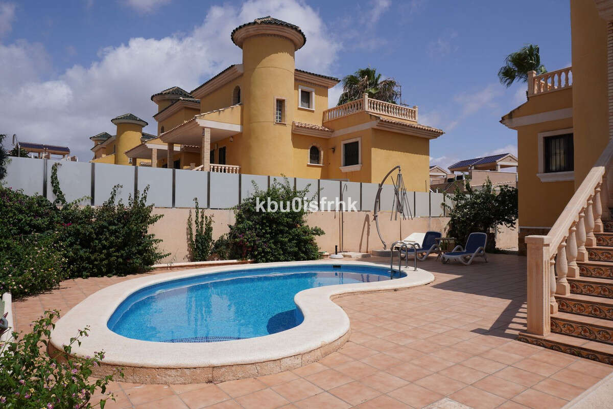 Step into your dream home in Orihuela-Costa's desirable La Rambla district—this spacious villa boasts a private pool, multiple entertaining areas, and a stunning solarium directly off the master suite.