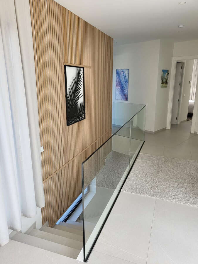 The open kitchen merges into the living and dining area, on this floor there are also three bedrooms with en-suite bathrooms and an exit to the garden. The bedrooms are located in their own wing, guaranteeing peace and quiet. There is under floor heating throughout the main floor.