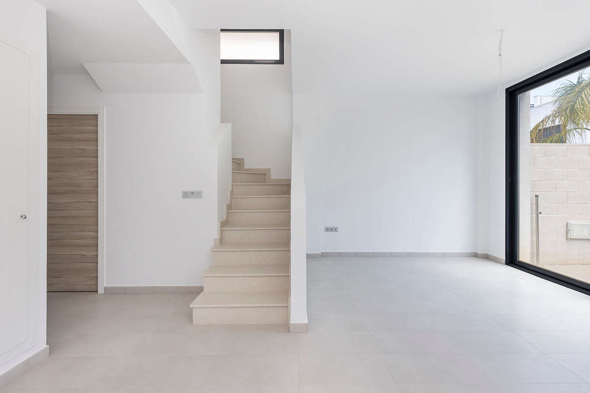 Modern villa with 3 bedrooms and 2 bathrooms. The property is distributed on 2 floors, on the ground floor there is a living-dining room with open kitchen, 1 bedroom and 1 bathroom. Upstairs we will find 2 bedrooms, a bathroom and a terrace. The house also has a large solarium of 37m2. The villa also has a private pool and private entrance for the car.