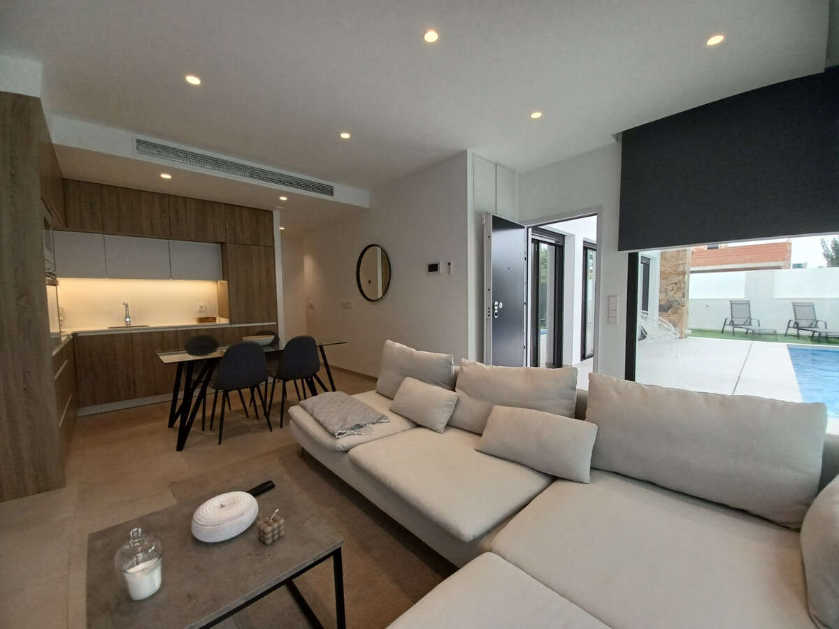 Located in the charming coastal village of Pilar de la Horadada, this beautifully designed 3 bedroom, 2 bathroom villa offers the best of modern living. This house, built in 2021, offers elegant and modern interiors, perfect for those looking for style and comfort in a great location. The villa has a bright, open living room that combines elegance and functionality. The modern kitchen is fully equipped with high quality appliances, making it ideal for everyday use and entertaining. Step into your own private oasis with a refreshing pool surrounded by a spacious terrace - the perfect place to soak up the Mediterranean sun or hold outdoor meetings. There is also plenty of space to park your car, ensuring comfort and privacy. The facility has a large solarium with a panoramic view. Here you can relax or enjoy the beautiful sunset. Located in the popular area of Pilar de la Horadada, just minutes from beautiful beaches, local amenities and the vibrant city center. This villa is a rare opportunity to own a modern home that combines luxury, comfort and a fantastic beach lifestyle.