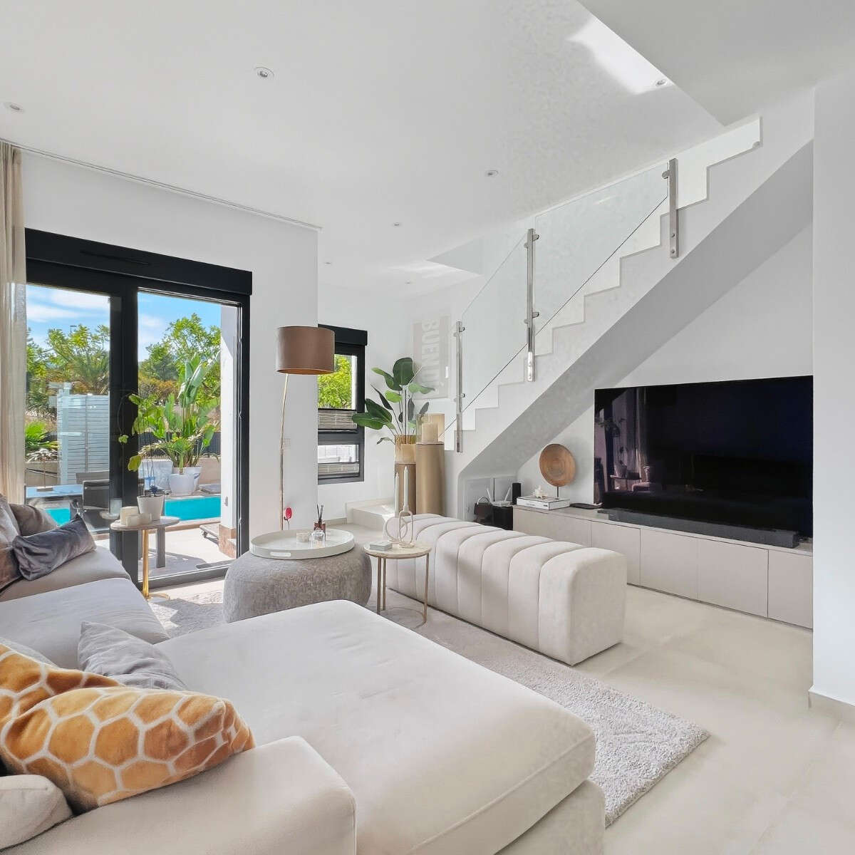 Outside, everything invites relaxation. The heated and cooled saltwater pool offers perfect comfort year-round. On the rooftop terrace, you'll enjoy the best of Spain – the view, the peace and unforgettable sunsets. The outdoor kitchen with water connection is ideal for long evenings with family and friends. The property also includes a private parking space.
