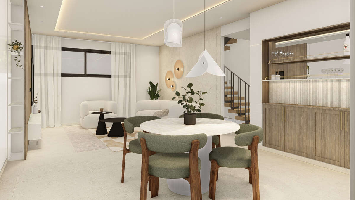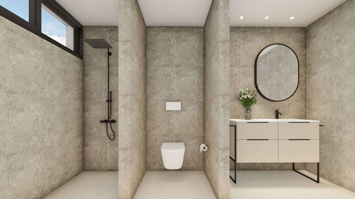 Plots ranging from 365.80 m² to 680.50 m² in Camino de la Solana, Polop (Alicante). Homes with a built-up area of 311.35 m². With 4 bedrooms, 4 bathrooms, and 1 toilet. Private pool of 3 x 10 m.