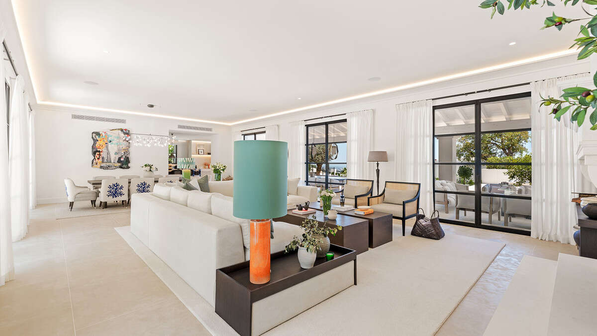 Enjoying an enviable setting, the villa provides an unparalleled living experience. It is just minutes from the world-renowned five-star hotels Puente Romano and Marbella Club, as well as the glamorous Puerto Banús. Residents benefit from proximity to luxury amenities, pristine beaches, international schools, and Marbella's charming old town—all while enjoying complete privacy in an exclusive enclave. Elevated above the coast, the villa boasts breathtaking panoramic views of the Mediterranean Sea.