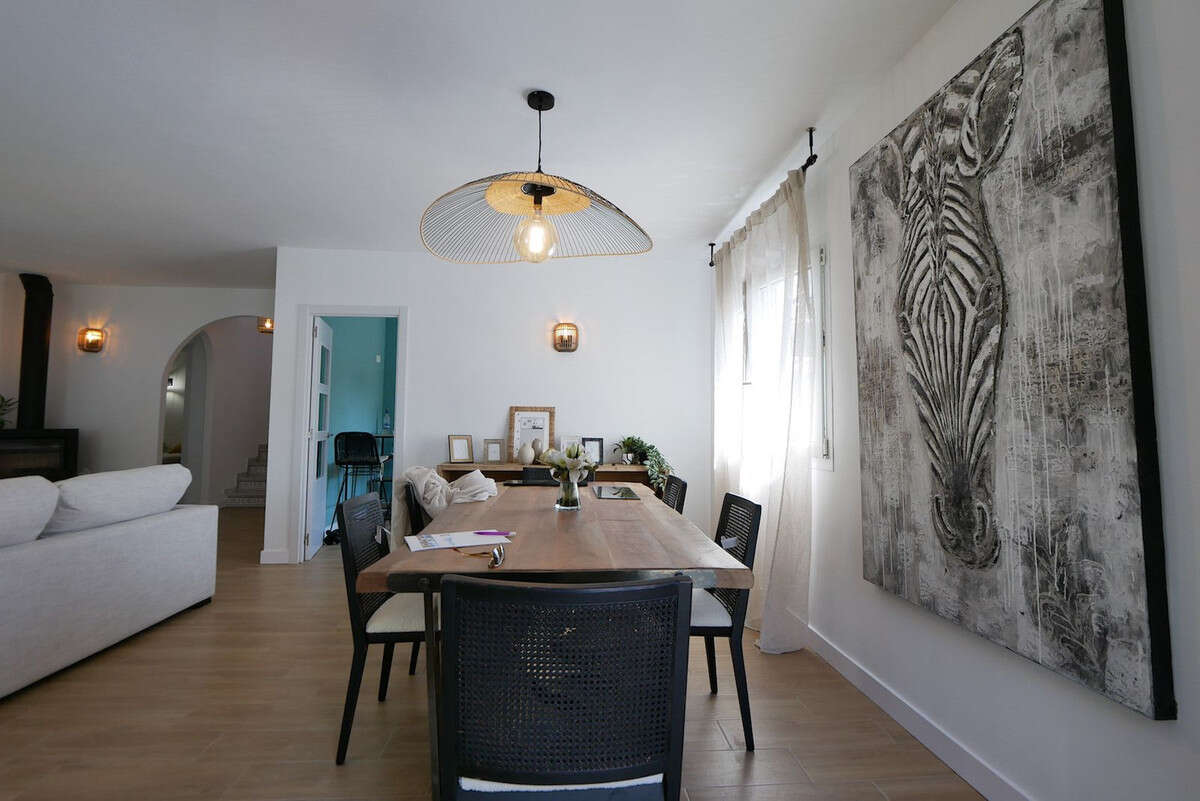 The property has been completely renovated and is spread over two floors. It offers a bright living room with double-height ceilings and a fireplace, a modern kitchen with access to the garden, and well-connected spaces that invite you to enjoy both the interior and exterior.