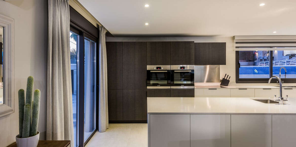 This gorgeous villa was fully renovated in 2018 to the highest of standards, with luxurious and high quality finishes, and boasts stunning panoramic views of the Mediterranean sea and La Concha mountain. The spectacular heated salt water infinity swimming pool of 12m x 5m also has an integrated Jacuzzi. The garden is easy to maintain and the outdoor kitchen/bar area is a great place to entertain family and friends.