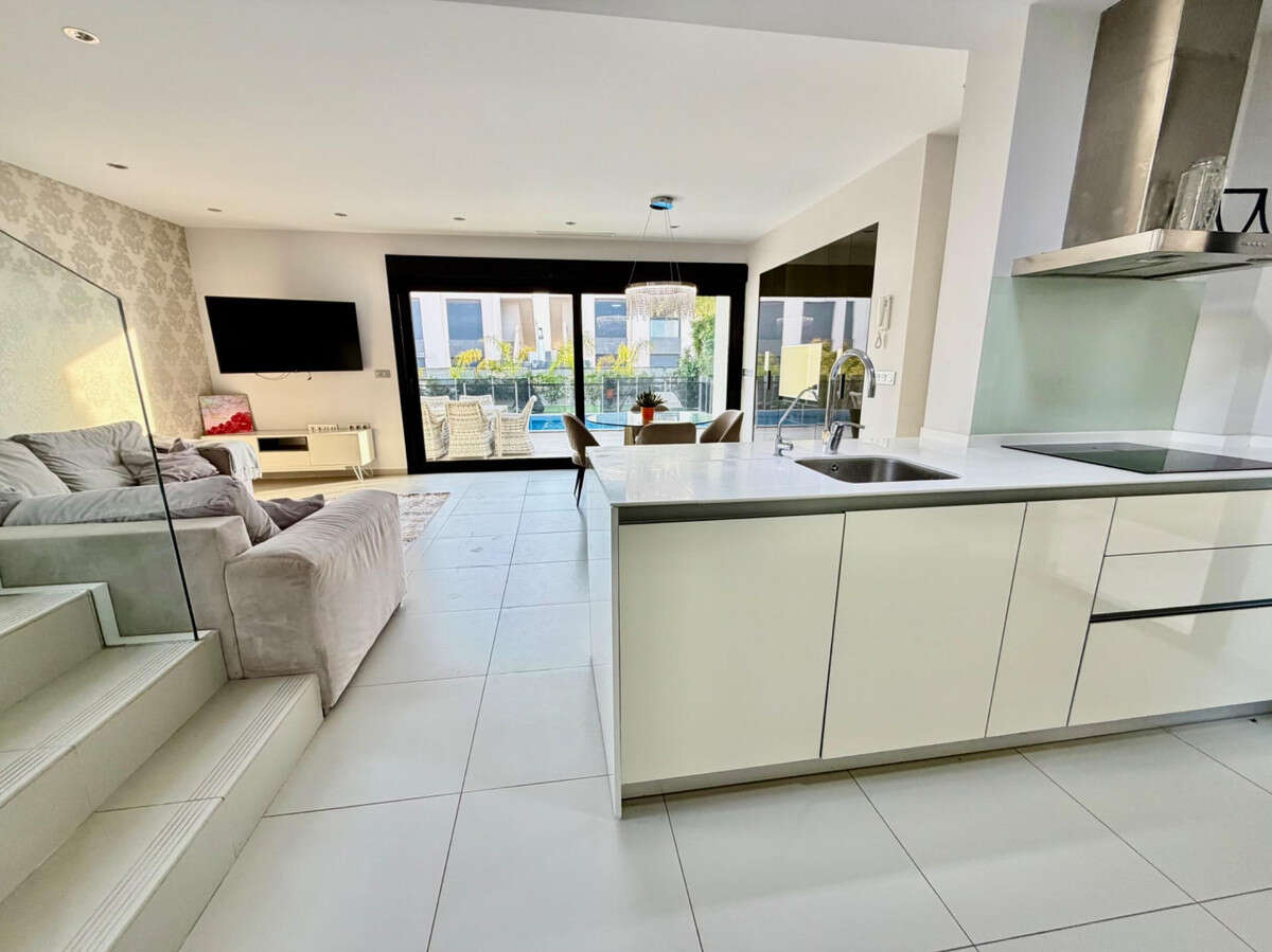 We are pleased to offer this beautiful modern detached villa, set in a quiet and well-located residential area. Designed for comfort, privacy, and easy Mediterranean living, this home is ideal for both permanent residence and holidays.~~Built in 2014, the villa sits on a 300 m2 private plot and offers 125 m2 of living space. The main floor features a bright open-plan living and dining area with a contemporary fully equipped kitchen, a master bedroom with dressing area, a full bathroom, and a guest toilet — all with direct access to the garden and private swimming pool.~~Upstairs, there are two spacious bedrooms, a complete bathroom, and access to a private terrace. From here, an external staircase leads to a large rooftop solarium, perfect for relaxing, sunbathing, or enjoying evenings with friends.~~The property has underfloor heating, central air conditioning, is sold fully furnished, and includes private parking. The landscaped garden and pool area create a peaceful space to enjoy the outdoor lifestyle all year round.~~A stylish, ready-to-move-into villa that offers comfort, space, and a true Mediterranean feel.
