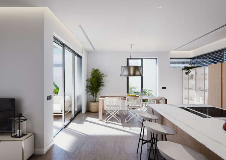 The villas are located in San Javier, about 2 km from the beaches and the promenade of Santiago de la Ribera. A pleasant area, surrounded by independent detached houses where you can enjoy the warmest winters of the Peninsula and the milder summers of the Mediterranean coast, thanks to the gentle breezes of Levante.