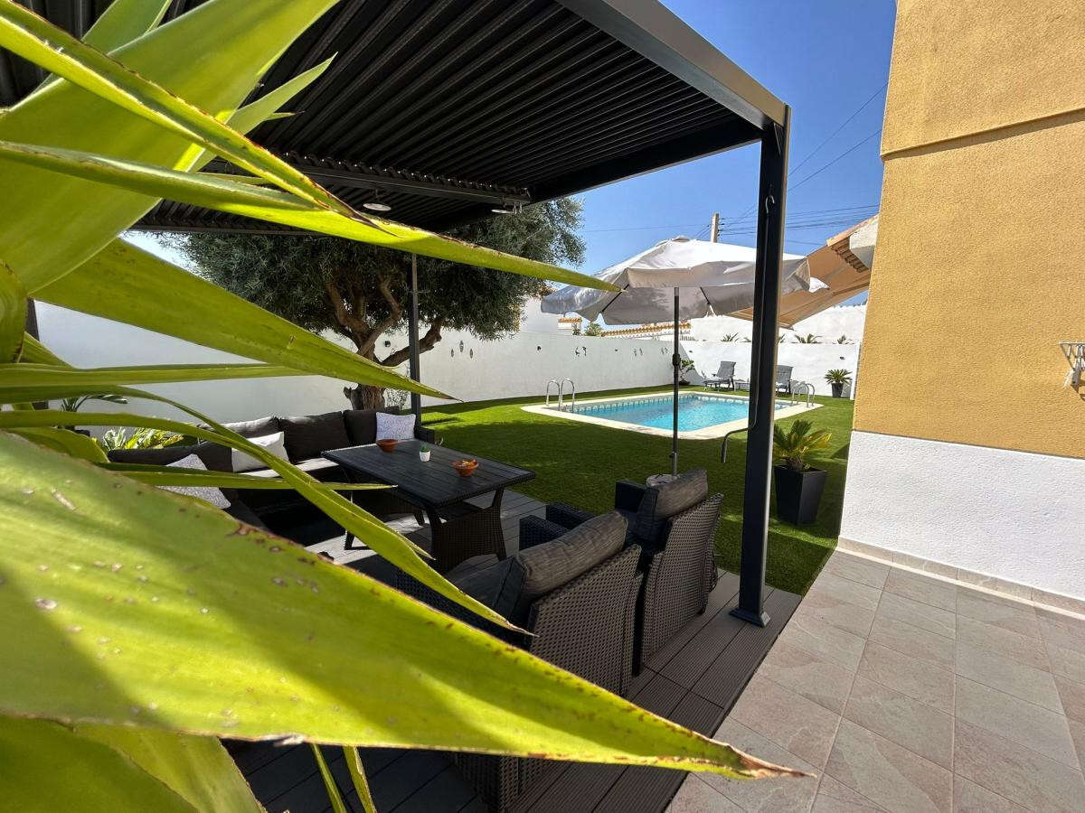 Discover this beautifully presented, spacious detached villa set on a generous 400m² private plot in the sought-after residential area of El Galan. Nestled between Villamartin and San Miguel de Salinas, the property offers a peaceful and secluded lifestyle while remaining close to key amenities.