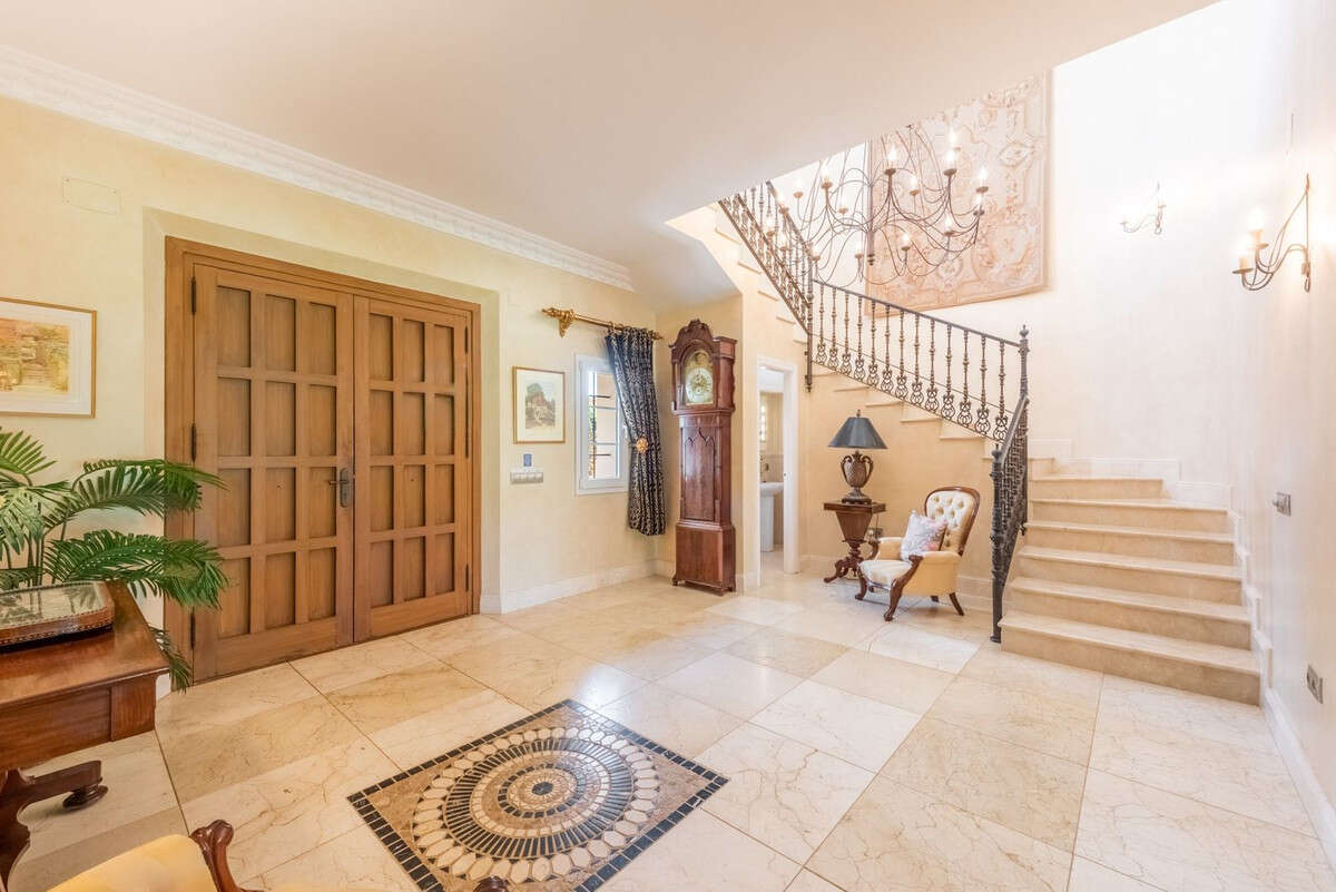 Stunning villa located in the prestigious San Roque Club urbanisation with 24-hour security. Located on the tenth hole of the "Old Course", this property offers beautiful views to the East over the "New Course" and towards the sea, as well as the mountains of Sierra Bermeja in the north-east. Built in 1999 but completely upgraded in 2005, the villa now has 7 bedrooms, 5 bathrooms and a downstairs WC. Recently installed solar panels give the villa an excellent Energy Certificate rating of A, ensuring high energy efficiency, year-round comfort and significant savings on energy costs.