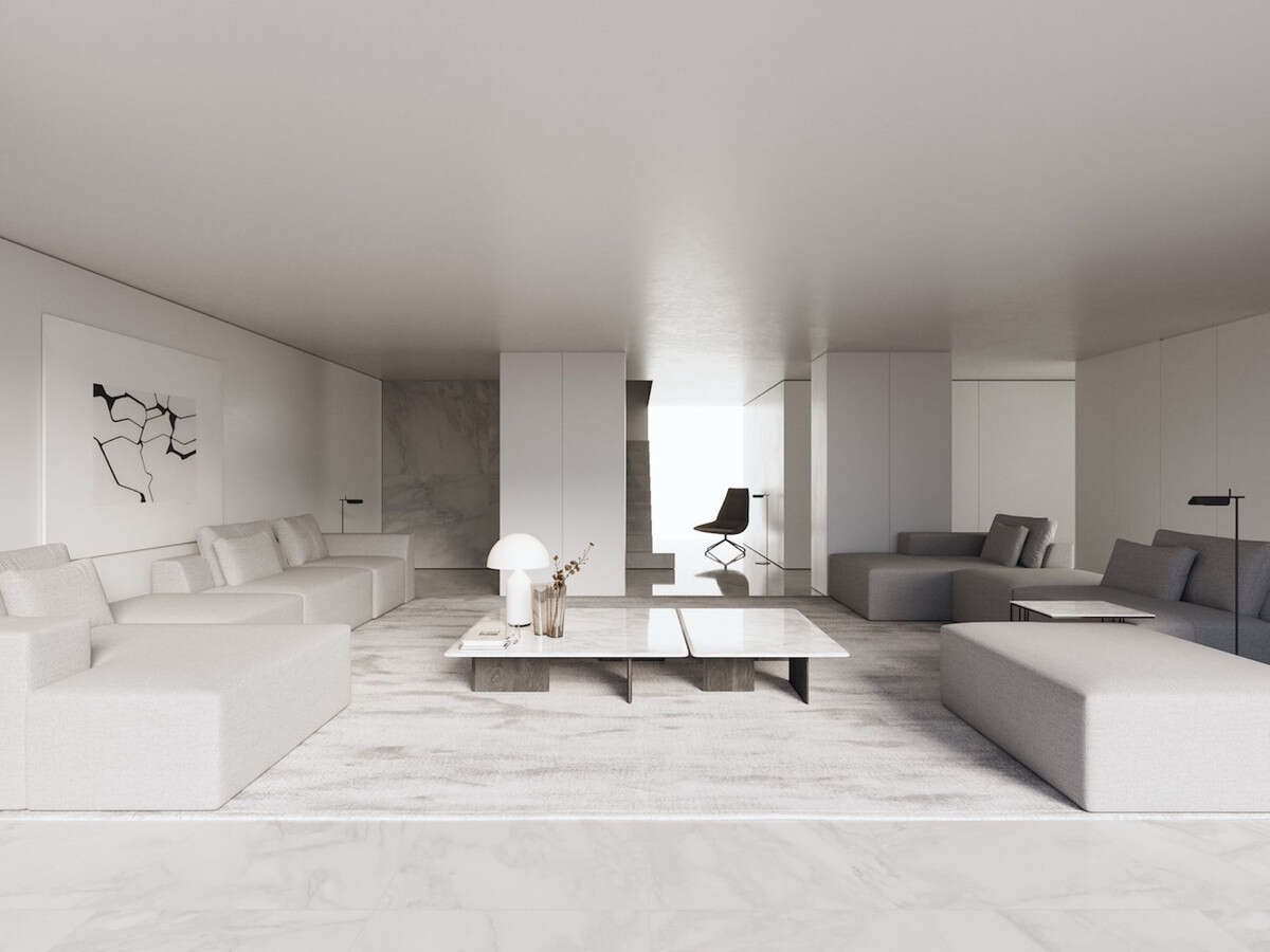 Upon entering the villa, a majestic hall welcomes us with a spacious and open-plan double-height ceiling, providing plenty of natural light thanks to its wonderful southeast orientation.