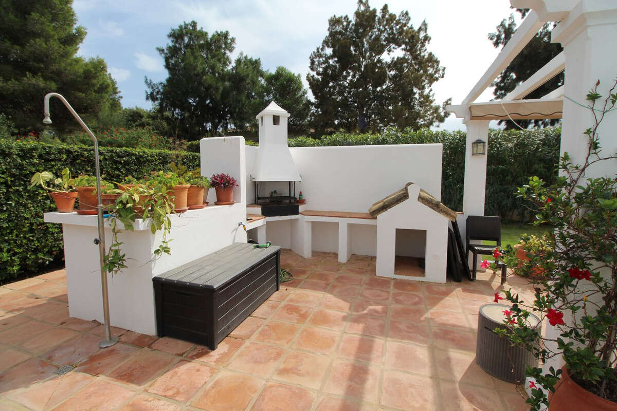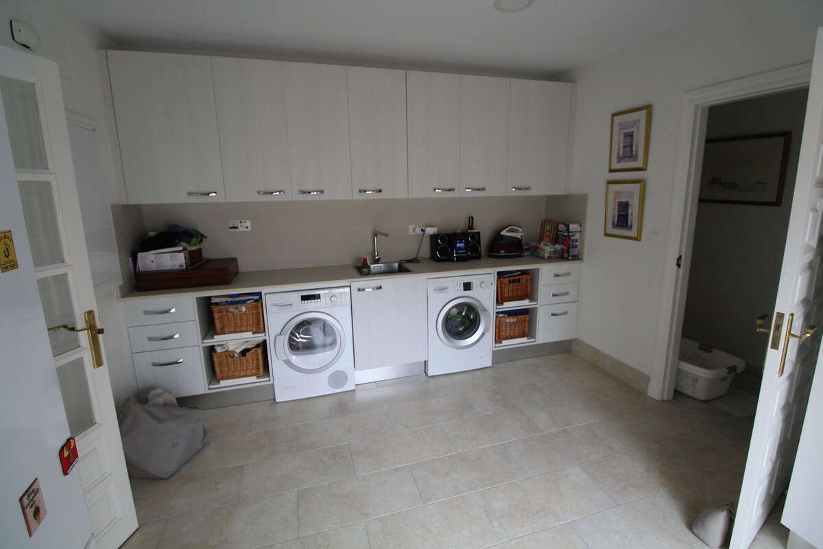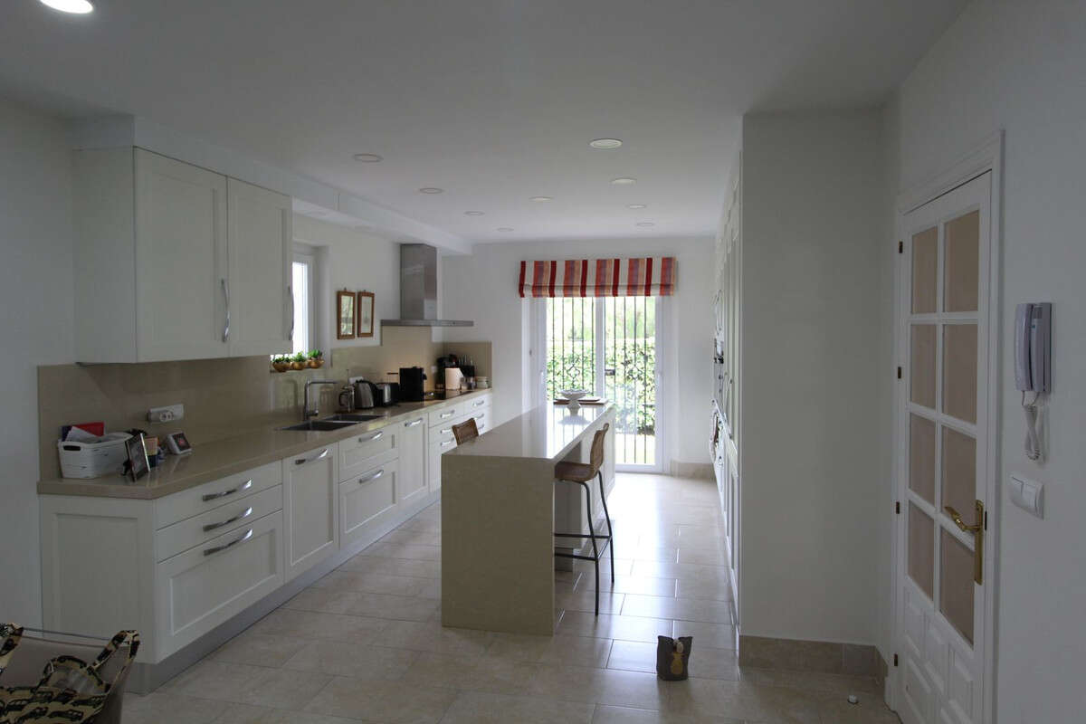 On the ground floor there is a spacious living room with an adjoining dining room and fireplace, a huge fully equipped kitchen with pantry and access to the laundry room, 4 large bedrooms with en-suite bathrooms and a beautiful Moorish style tea room with fabulous tiles and Nasrid friezes. From the living room you can access a large covered terrace that serves as a dining room and chillout area overlooking the garden and pool. Next to the pool there is a barbecue area with a pergola and hammocks, perfect for the summer.