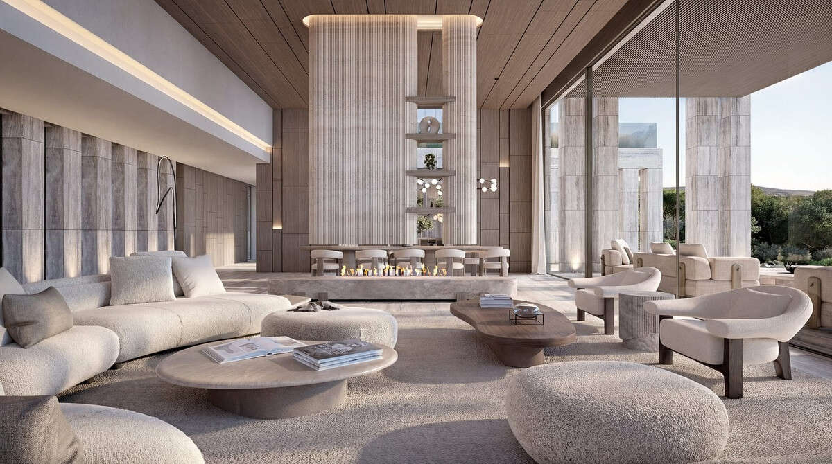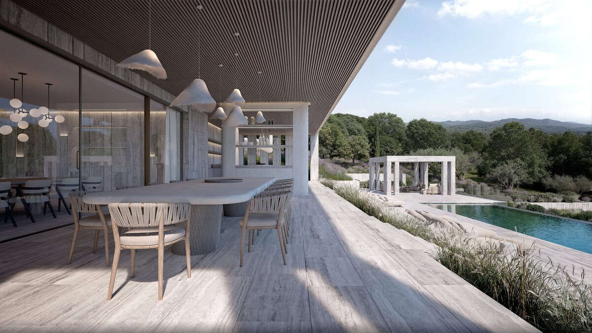 Spanning nearly 4,000 m² of meticulously crafted living space, the home centers around a double-height entrance that invites natural light to define every room. The residence features eight sophisticated suites—including a majestic master sanctuary—and ten bathrooms, all finished with noble materials that emphasize craftsmanship and tactile luxury. The social heart of the villa flows effortlessly toward a magnificent infinity pool that merges with the horizon.