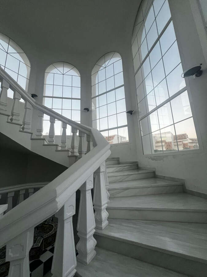Spectacular detached villa in traditional Andalusian style, with white façades and elegant arches, located in one of the most exclusive areas of Torre Quebrada. The property stands out for its large private pool with slide, surrounded by a sunny stone terrace, ideal for sunbathing and enjoying the outdoors.