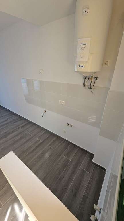 The entrance opens onto a cozy open-plan kitchen/living area, modern and functional, perfect for moments of relaxation or socializing.