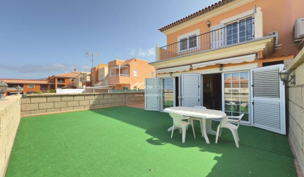 We are pleased to present this spacious and elegant semi-detached house for sale in the sought-after area of El Madroñal, Costa Adeje. With a total built area of 383 m², distributed over three floors, this bright home offers comfort and functionality. The main floor is surrounded by a private outdoor space that includes a beautiful garden, chill-out area, and a solarium ideal for enjoying Tenerife's sunny climate all year round, which could also be used to install a private swimming pool. Inside, the open-plan design includes a spacious living room, open kitchen, and guest toilet. The fluid layout and abundant natural light create a cosy and pleasant atmosphere. On the upper floor there are three bedrooms. Two of them share a balcony and a full bathroom, while the master bedroom has its own private balcony and en-suite bathroom. The ground floor includes a private garage with space for several vehicles, as well as a large storage room. The property is sold fully furnished and equipped with all appliances, ready to move into. Community fees are only €35 per month and the annual property tax is €680. An excellent opportunity for families or anyone looking for a well-located and stylish home in the south of Tenerife.