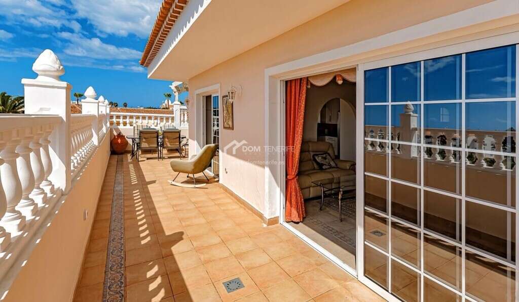 We are delighted to present this beautiful detached villa in the wonderful area of Callao Salvaje. This magnificent villa is located in one of the most sought-after areas of Callao Salvaje and combines comfort, elegance and spaces designed to enjoy the southern Tenerife lifestyle to the fullest. Spread over two floors, the property has a floor area of 223 m² on a plot of 350 m². On the main floor there are three bedrooms, one of which has an en-suite bathroom, and a second full bathroom with shower. The upper floor features a spacious and bright living room with access to a terrace with stunning sea views, a modern fitted kitchen and a guest bathroom. The living area connects to a charming patio and a large terrace with a heated swimming pool, bar and barbecue, perfect for gatherings and moments of relaxation. The basement offers great versatility, with space for a fourth bedroom or study, laundry room and an additional office. Outside, the property has private parking, with the possibility of covering the space for two cars. This villa is the ideal solution both as a main residence and as an exclusive holiday home, thanks to its privileged location, the quality of the spaces and the services it offers.IBI 450€