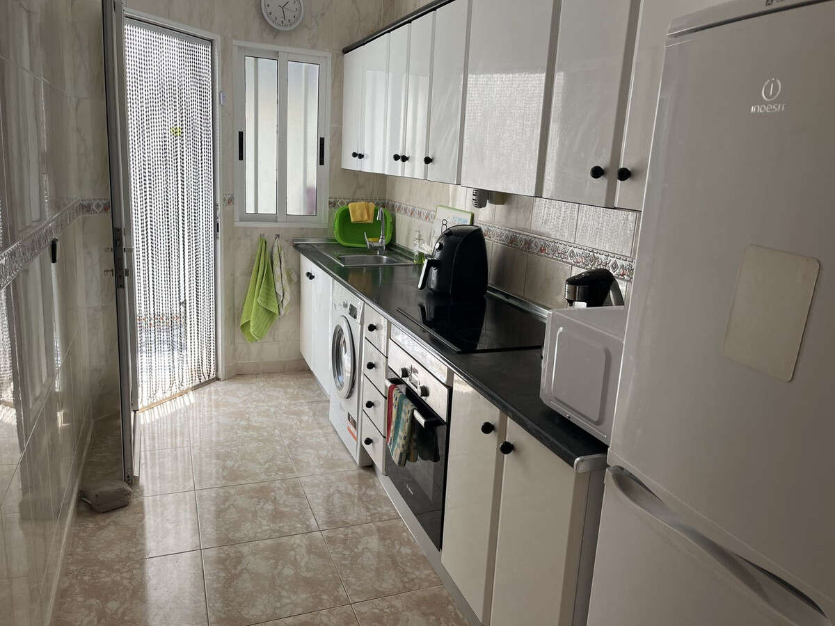 This fully furnished home offers a welcoming lounge and dining area, a separate fully equipped kitchen, a guest bedroom, and a bathroom on the ground floor, ideal for hosting friends and family. Venture upstairs to find a spacious double bedroom, wardrobes and additional storage along with a family bathroom complete with a relaxing tub. Enjoy your morning coffee or evening sunset from the front or rear terrace or the rooftop garden space, perfect for sunbathing or additional storage. Just a short stroll away, the vibrant central plaza boasts an array of amenities including supermarkets, shops, cafes, restaurants, and banks. For beach lovers, a stunning 5 km promenade with inviting beaches, lively bars, and exciting water sports is within walking distance. If you fancy a cool swim there is a public pool open during the summer months just a 15 minute walk away.