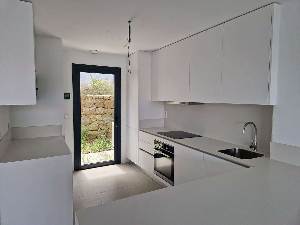 Brand new semi detached villa near Atalaya golf course and within easy reach of Atalaya golf club and El Paraiso golf club. The property faces west and has it's own private parking space within the private plot of the house. One enters a spacious living dining room with open plan kitchen and this whole area flows gently out to a large sunny terrace with views of the surrounding countryside. On this level there is a guest bathroom. Upstairs is the master bedroom with a bedroom ensuite and another bedroom which shares a terrace with the master bedroom. There is a third bedroom which shares a bathroom with the second bedroom.