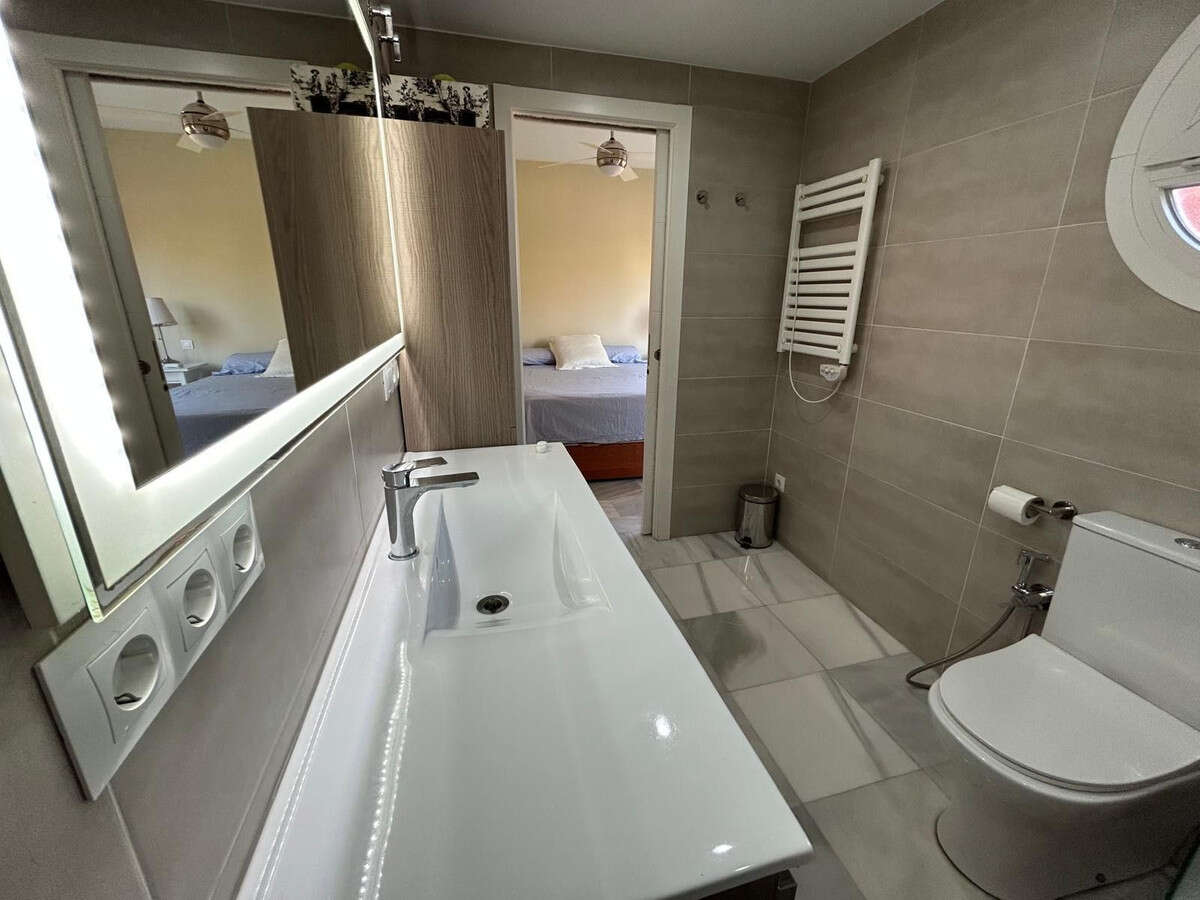 Spectacular corner townhouse in Lomas de Monte Biarritz, between Marbella & Estepona. Just 2 km from the beach and San Pedro de Alcántara, this 203 m² home sits on a 423 m² plot with a private tropical garden. Features include a bright living room with garden access, renovated premium kitchen, 4 bedrooms, 3 bathrooms, and a large solarium. Extras: Kommerling windows, photovoltaic solar panels (warranty until 2029), communal pool & gardens. A private retreat in one of the Costa del Sol's most sought-after areas.