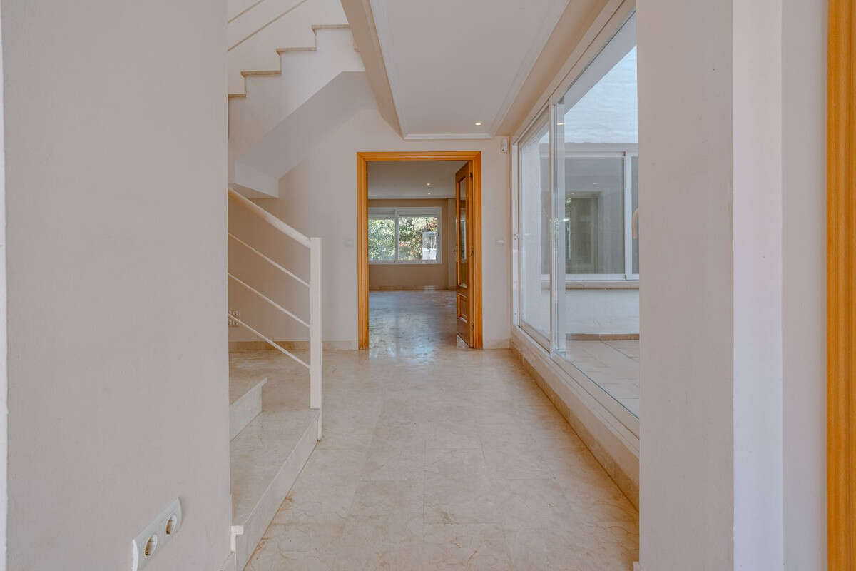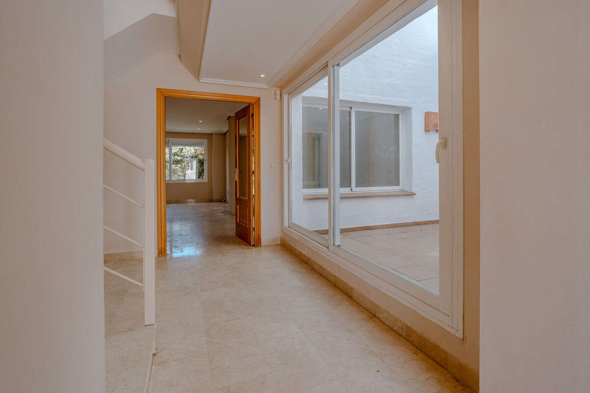 This semi-detached house offers a wonderful combination of space, character, and potential, ideally located within a well-maintained and leafy urbanisation. The property features 3 bedrooms, 2 bathrooms and a guest toilet, distributed across a functional layout. A charming internal patio brings natural light into the home and adds a distinct Andalusian style and atmosphere, creating a warm and inviting feel throughout. One of the standout features is the 250 m² private garden, perfect for outdoor living, entertaining, or creating your own oasis. The storage room in the garage area brings the possibility of adding a 4th bedroom or office to the property. The home also benefits from two balconies: one overlooking the garden and communal areas, and another facing the street with beautiful sea views. In addition, there are two terraces offering 360º panoramic views of the sea and mountains, providing exceptional spaces to relax and enjoy the surroundings at any time of day. The property includes a fully equipped kitchen with the possibility to expand, offering flexibility to adapt the space to your needs. While the house is in good structural condition, it would benefit from some renovation, making it an excellent opportunity to personalise and add value. The urbanisation is known for its lush greenery, with palm trees and well-kept communal areas, including a swimming pool, gym, sauna, and events area. Ideally located within walking distance to Unicorn Racket Club, the American School, Atlas International School, as well as cafés and restaurants, this property offers both convenience and lifestyle. A fantastic opportunity for those seeking a home with character, outdoor space, and strong potential in a prime location.