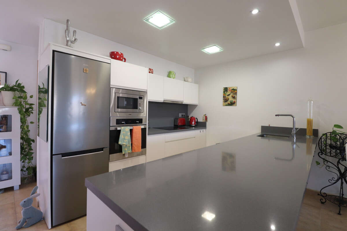 This East Facing, Three Bedroom, End Townhouse in Benijofar is located within a lovely, well-kept urbanisation, just a 5 to 10 minute walk from a wide range of amenities, including a park and lake, commercial centre, popular cafés, restaurants, and a main chain supermarket. La Marquesa golf course in Rojales is just a 10 minute drive and the all so popular Guardamar stretch of beach 15 minutes. Spread over three floors and beautifully presented throughout, this spacious 174m² home features an open-plan living area with glazed doors leading out to a partly covered terrace, boasting views over the communal pool area. The modern fitted kitchen is sleek and functional, and there's also a convenient cloakroom on the main level. Stairs lead both to the first floor and down to the large underbuild garage. Upstairs, the first floor offers three double bedrooms, all with built-in wardrobes. Two of the bedrooms have access to private terraces one offering a view towards the mountains, and there are two stylish shower rooms, including one en suite to the master. Outside is a tiled, low-maintenance garden, and the 58m² garage is accessed via a secure gated entrance. Extras include air conditioning and access to a beautifully maintained communal pool. A fantastic opportunity for full-time living or a holiday home in a sought-after location on the Costa Blanca South.\n