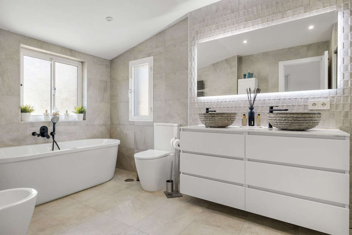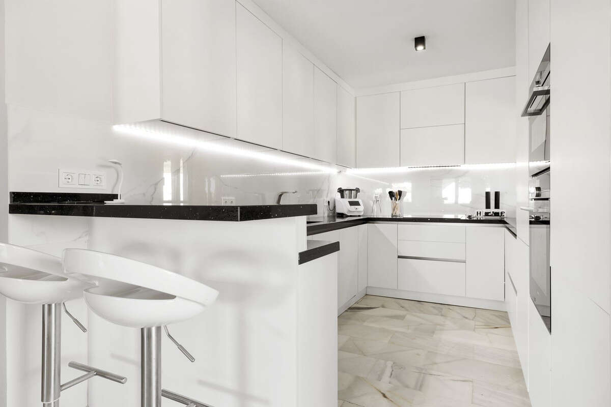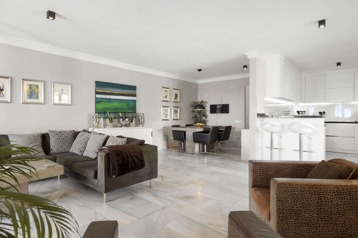 This beautifully renovated corner townhouse with sea views is located in the sought-after urbanisation of Las Gaviotas., in Calahonda. Originally two separate apartments, it has been seamlessly transformed into a single elegant home with a Scandinavian design aesthetic. Premium materials and luxurious finishes create a stylish, contemporary atmosphere full of warmth and character.