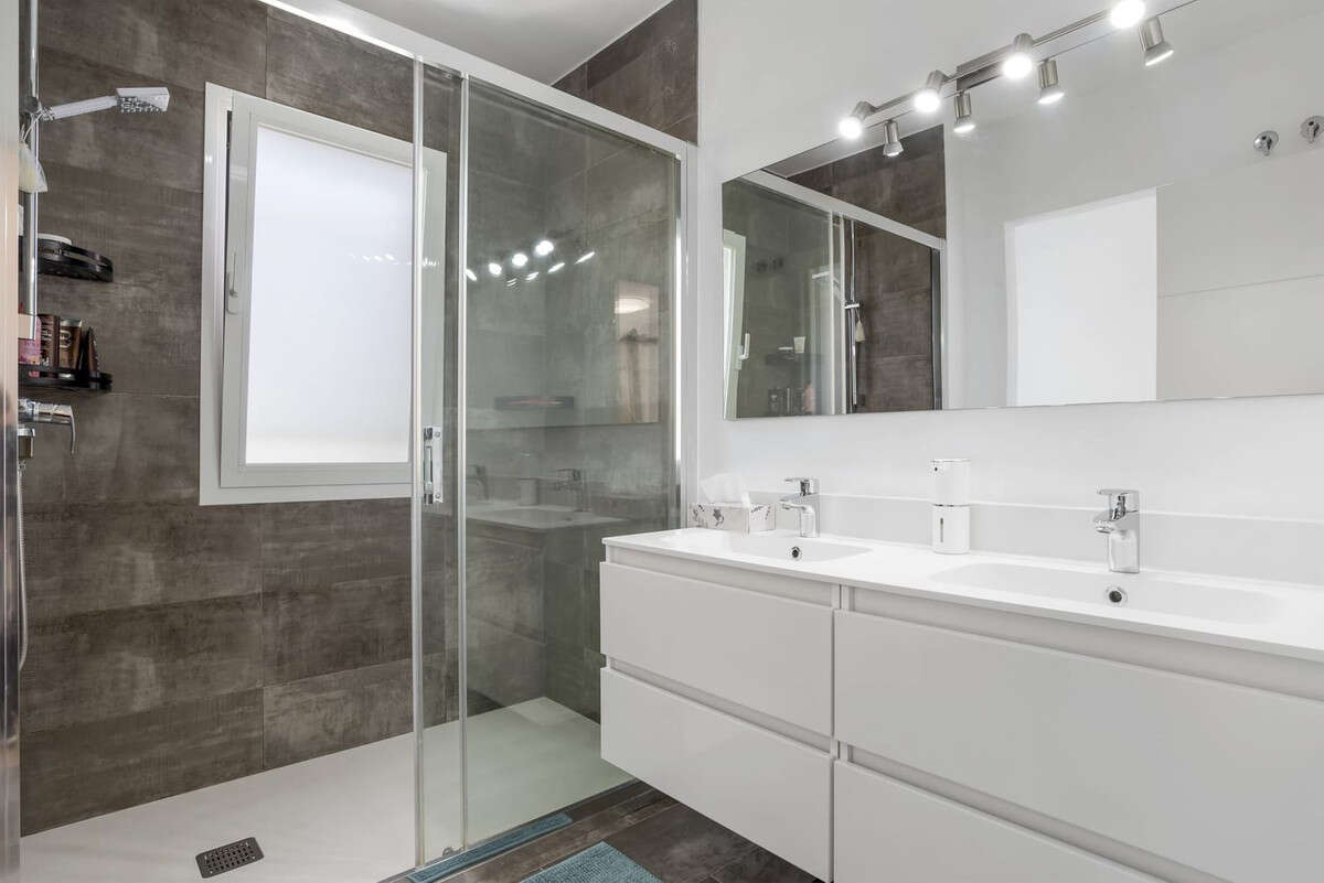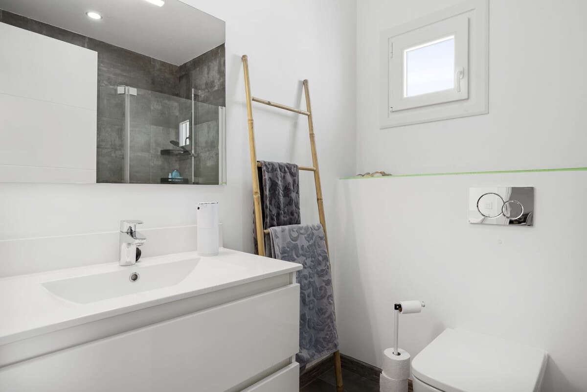 The open-plan living area leads to a stylish terrace with a bioclimatic pergola and outdoor jacuzzi, creating a private oasis for relaxation. The house comes fully furnished, and includes air conditioning, underfloor heating, double glazing, electric shutters, alarm system, and an excellent A-rated energy certificate. A 6.3 kWh solar panel system ensures extremely low annual electricity costs (approx. 300–500€).