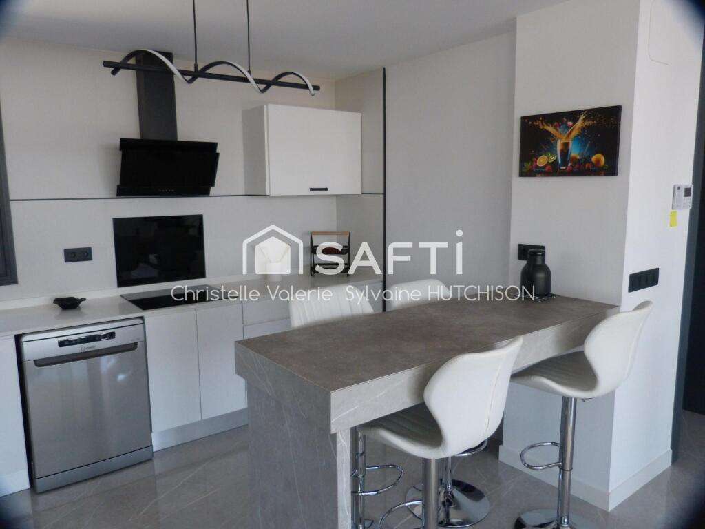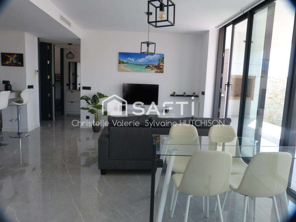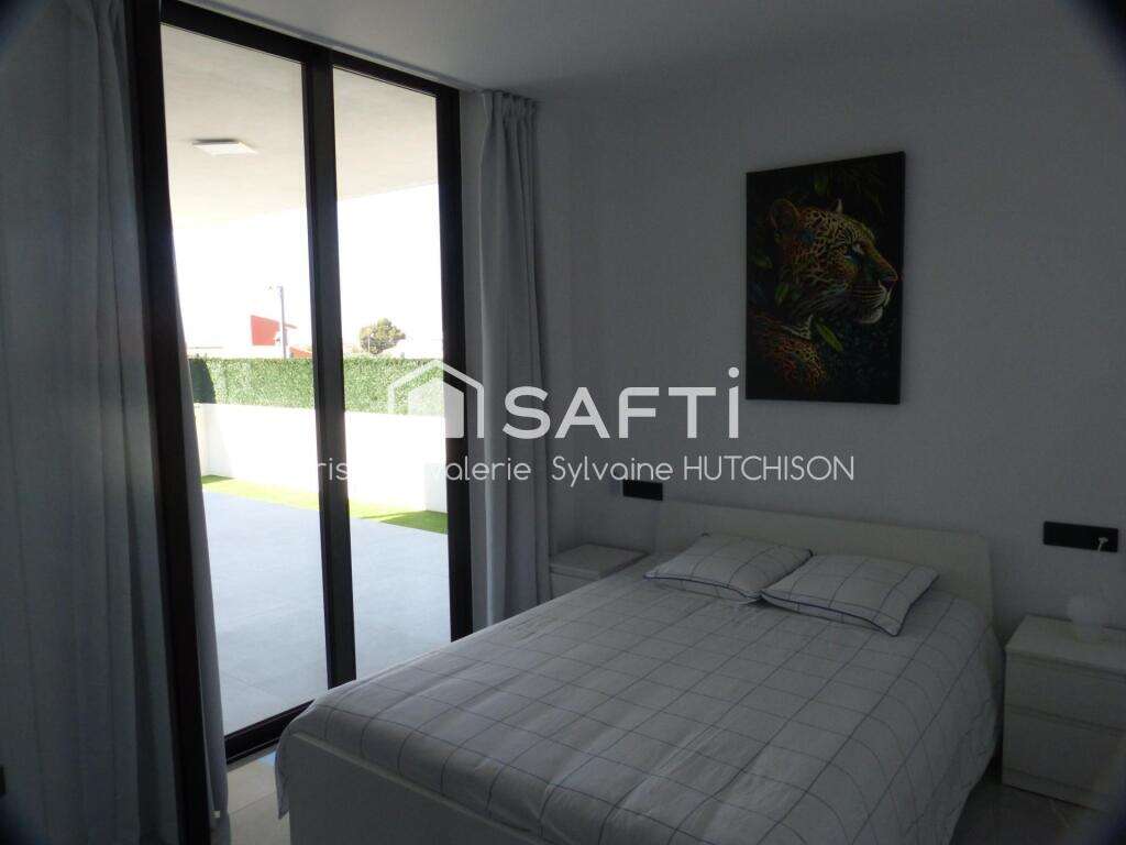 This stunning villa is located in the residential area of Fortuna. It is being sold fully furnished and includes 10 solar panels, electric shutters, LED lighting throughout, an intercom, and cameras. The property consists of a spacious, open-plan, fully equipped kitchen leading to a bright living room. The latter features sliding glass doors with electric shutters leading to the terrace. At one end of the villa is a full bathroom with a shower, and two bedrooms, one single and one double, with access to the terrace. At the other end, there is a double bedroom with sliding glass doors leading to the terrace and a full bathroom with a shower. Access to the basement is via an internal staircase from the living room or through the exterior garage door. The large basement, already connected to water and electricity, offers exceptional space suitable for residential use. The interior space, enclosed by an electric gate, houses a 15 m² swimming pool with a motor and shower, as well as a barbecue with a sink. The plot is covered with artificial grass and gravel. I invite you to visit this high-quality, turnkey property.