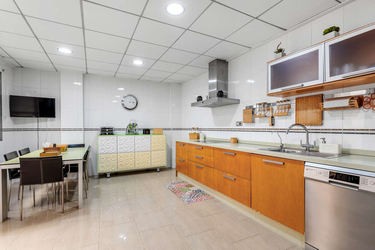 The house spans three floors, offering 344 m² of living space. On the ground floor, you'll find a spacious garage that can hold up to four vehicles, complete with a loft area. The main entrance leads into the house, where the first floor opens up to a large kitchen. This independent kitchen has plenty of storage space and granite countertops, and it is equipped with modern appliances. There is also a pantry and access to a charming rear patio, which features a laundry area, barbecue, and additional storage. The open-plan living and dining area is bright and spacious, providing an ideal setting for family time or entertaining guests. A guest bathroom is also located on this floor.