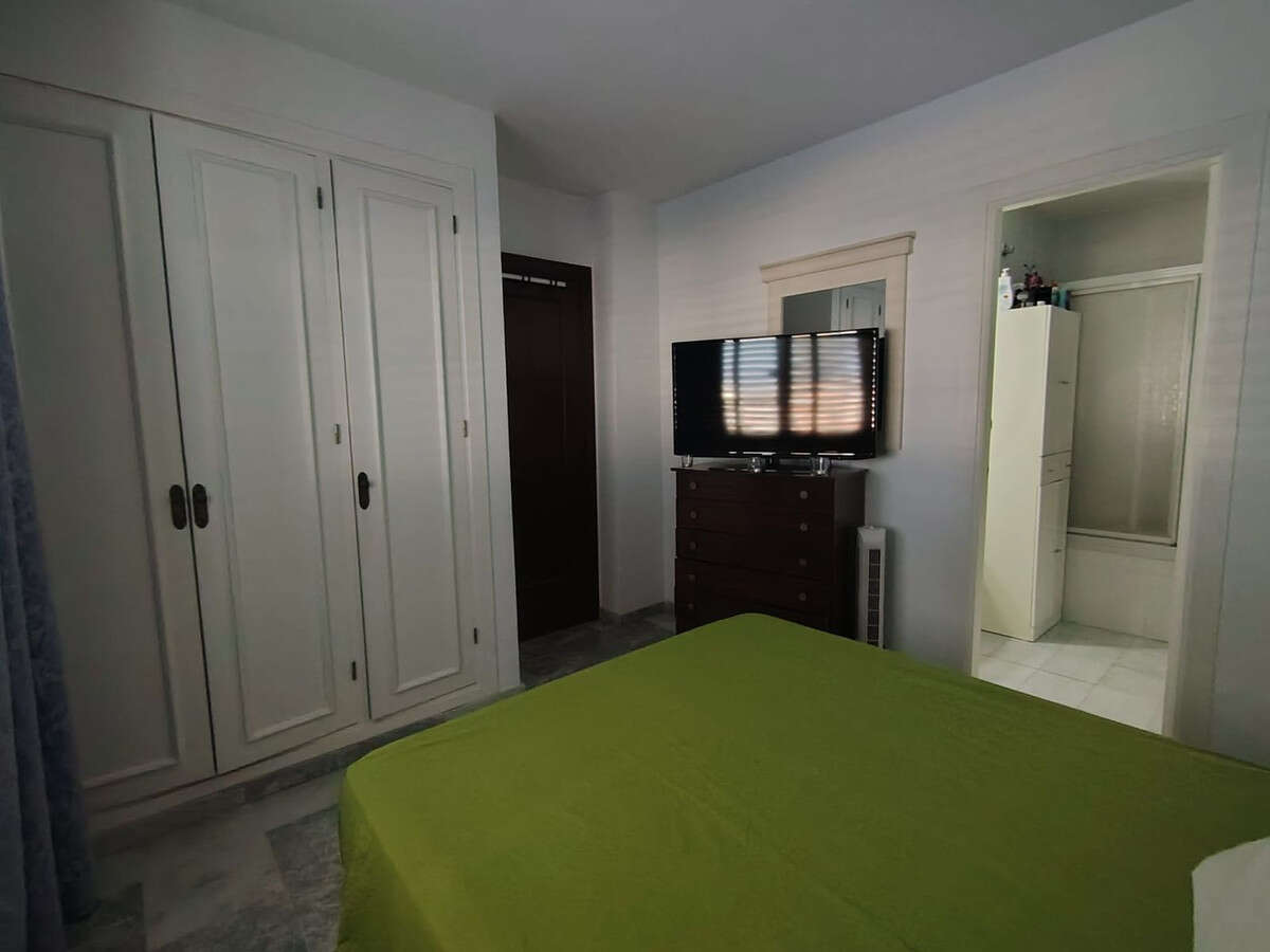 master bedroom with fitted wardrobe and en-suite bathroom.
