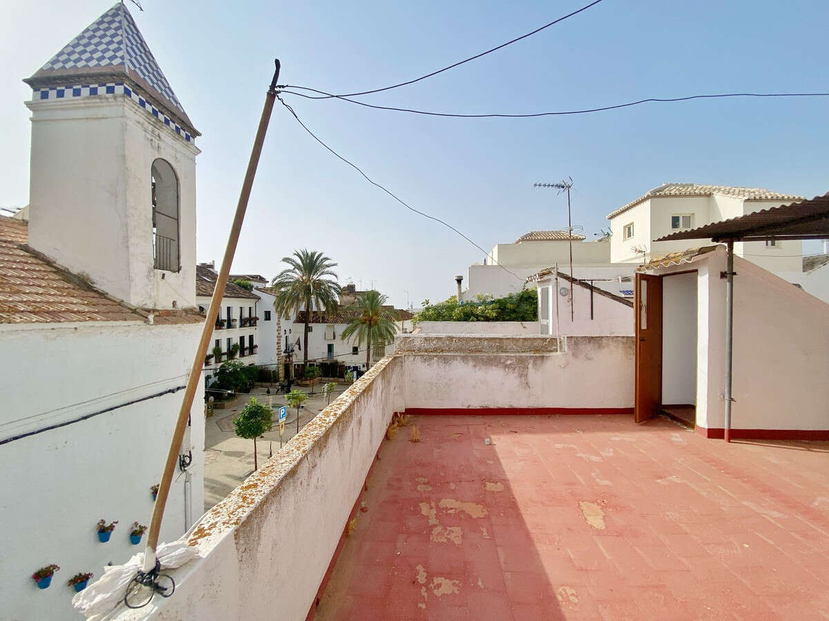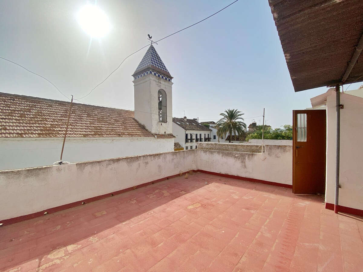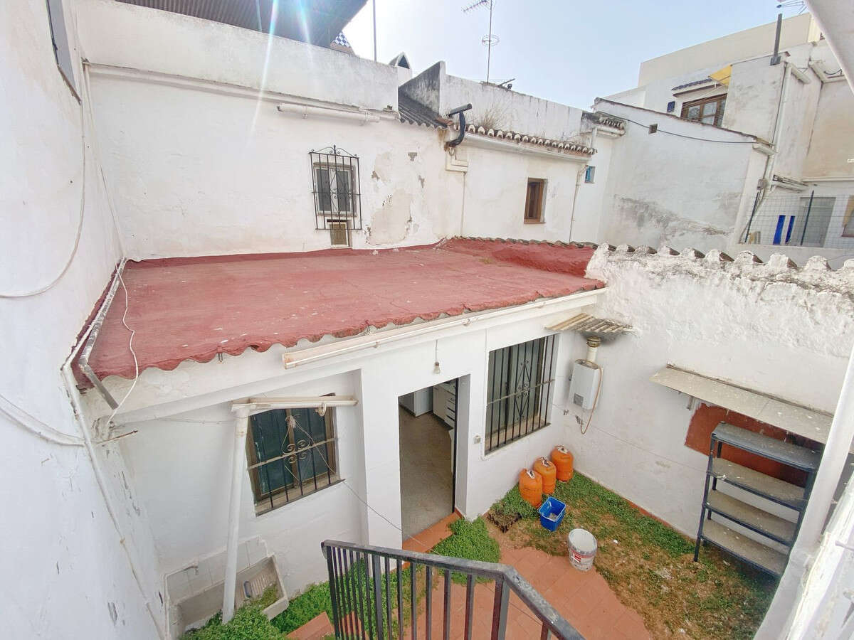 A two-story building in need of restoration, featuring several bedrooms and two small, independent apartments with several terraces and patios.