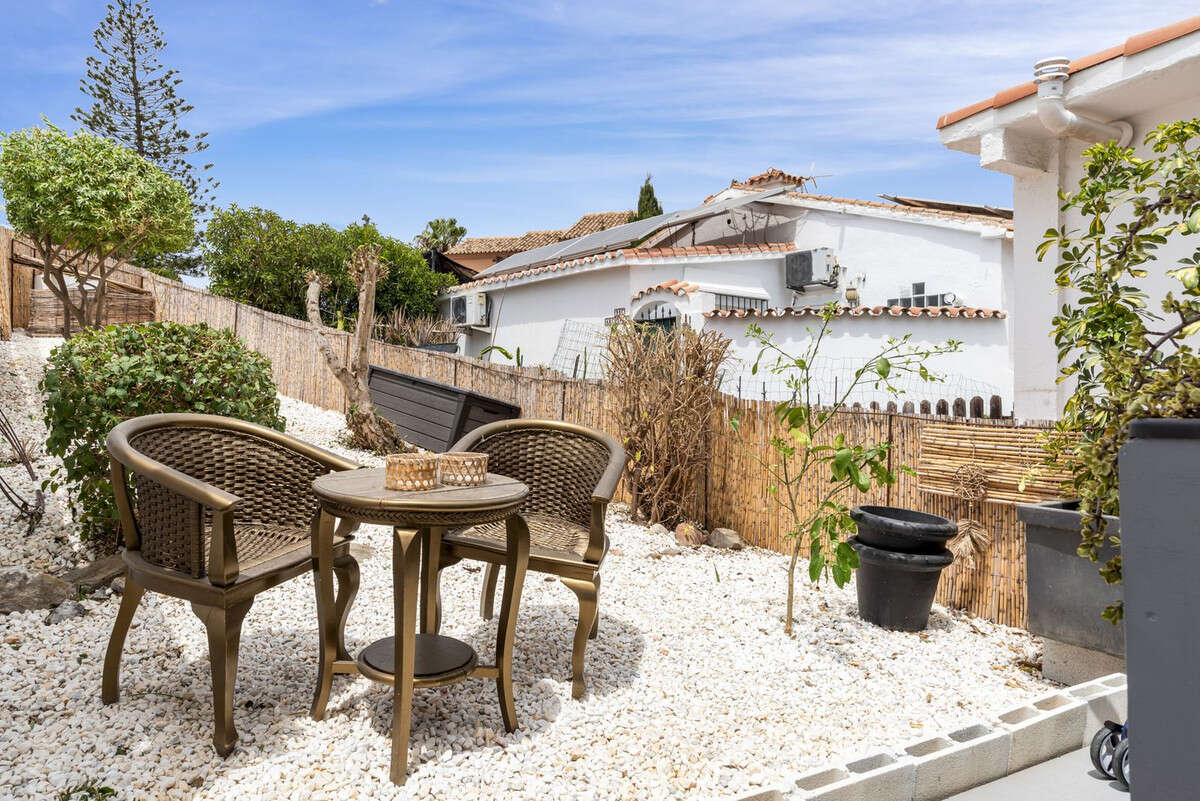 All the way down, there is a separate apartment. It has its own entrance and its own outdoor space, making it a separate residence. The apartment has a living room with an open kitchen, a bedroom, and a bathroom. This apartment was also completely renovated last year.