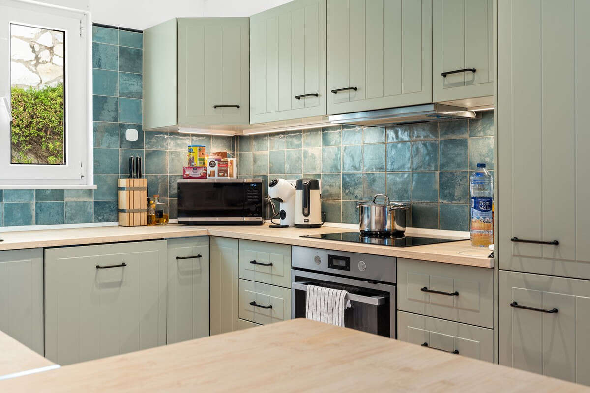 The property boasts a private terrace with chill-out area and pleasant sea and coastal views, along with an easy-to-maintain garden, perfect for enjoying outdoor living.