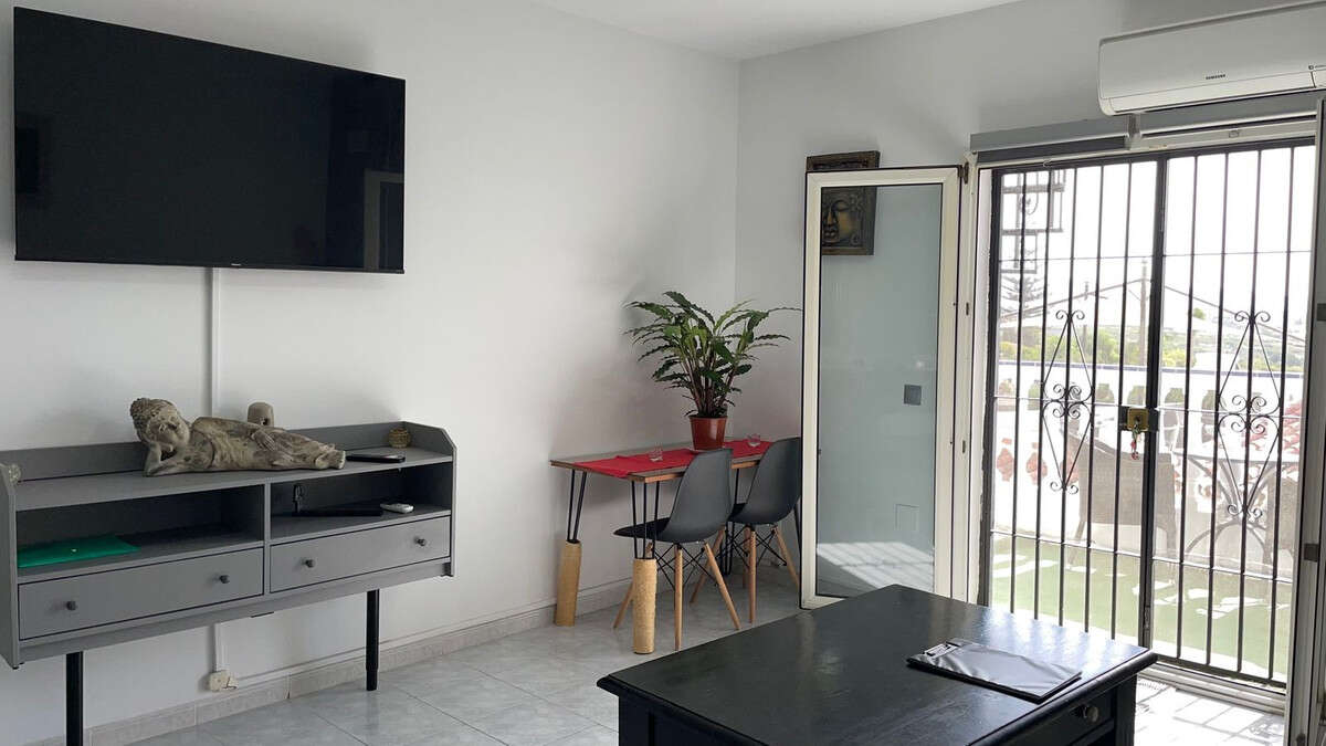 Immaculate townhouse in Punta Lara (Nerja) on 3 floors. The main house is on 2 levels and has 2 large bedrooms, 1 bathroom, spacious lounge with balcony and fully fitted kitchen. There's a large south facing roof terrace with panoramic sea and mountain views, with pergola, dining area, water and electrical connection, barbecue and multiple storage. The under built of the house has been converted in a self contained studio with fitted kitchen and bathroom and separate entrance.