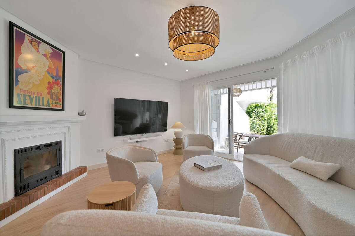 Town House for sale in Camojan Blanco, Marbella with 4 bedrooms, 4 bathrooms, 4 en suite bathrooms and with orientation south, with communal swimming pool and private garden. Regarding property dimensions, it has 233 m² built. Has the following facilities garden view, pool view and partial sea views.