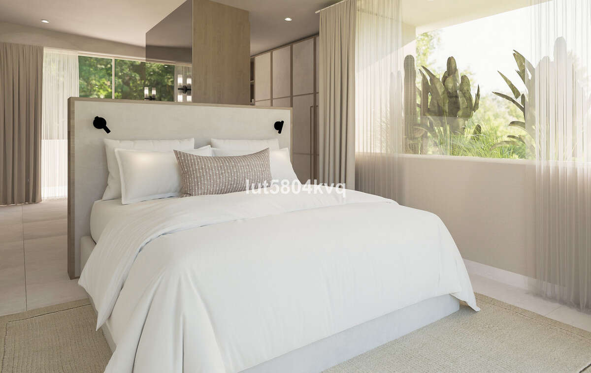 Upstairs, the villa features three generously sized en-suite bedrooms, each thoughtfully designed for comfort, privacy, and natural light. The master suite, located on this level, is a true highlight—featuring a stylishly centered bed, a spacious walk-in wardrobe, and a luxurious en-suite bathroom. This serene retreat offers uninterrupted panoramic views of both La Concha Mountain and the Mediterranean Sea, creating a breathtaking visual experience from the moment you wake.