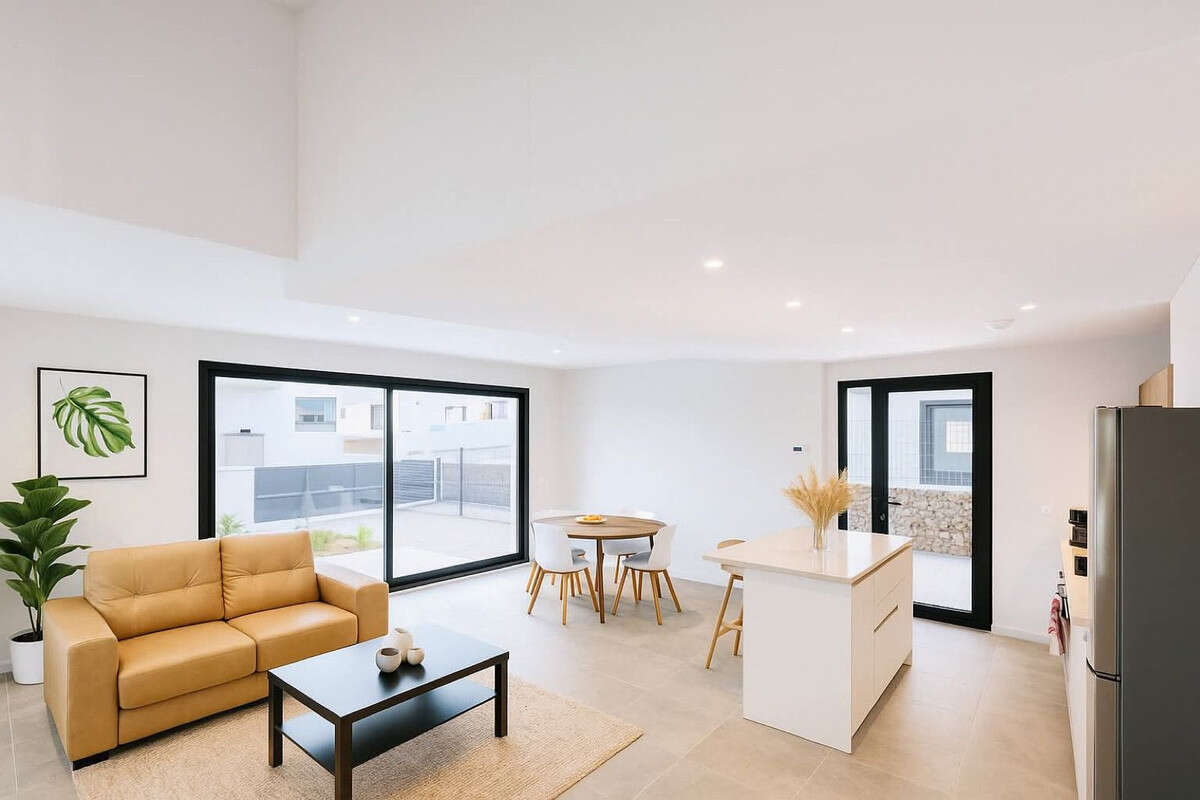 Discover your dream home in this stunning semi-detached house located in the beautiful Riviera del Sol. This new construction boasts a south-facing orientation with breathtaking sea views, featuring 4 spacious bedrooms and 3 modern bathrooms. Enjoy the luxury of a fully equipped kitchen, expansive interiors, and a large terrace perfect for relaxation. Just 2.1 km from the beach, this property offers both comfort and convenience. With high-quality finishes, a private garage, and the option to build your own pool, you'll have everything you need for a luxurious lifestyle. The gated community includes lush garden areas, a communal pool, and a gym, making it the perfect place to call home.