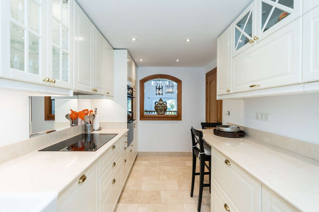 Beautiful townhouse in a small complex in Riviera del Sol in Mijas-Costa frontline Golf. The house offers on the main level a fully equipped modern kitchen, a guest toilet, storage, one bedroom with en-suite bathroom and a large dining and living room with fireplace and with access to the private terrace with private garden. On the first floor there are two further bedrooms with en-suite bathrooms and a lovely summer terrace. There is also a roof terrace with sun all day. In the basement there is huge area that could be converted into a cinema, gym, more bedrooms, etc. In front of the house and in the complex there is a private parking space.
