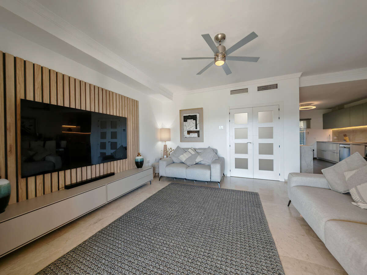 Town House for sale in , Mijas Costa with 4 bedrooms, 3 bathrooms, 1 toilet and with orientation south/east, with communal swimming pool, private garage (3 parking spaces) and private garden. Regarding property dimensions, it has 175 m² built and 70 m² terrace. Has the following facilities front line golf, air conditioning, fully furnished, fully fitted kitchen, utility room, marble floors, basement, storage room, alarm, solarium, security entrance, double glazing, security service 24h, guest toilet, private terrace, living room, separate apartment, sea view, golf view, heated pool, automatic irrigation system, security shutters, smart home system, bars, laundry room, internet - wi-fi, covered terrace, fitted wardrobes, gated community, garden view, pool view, panoramic view, close to children playground, close to sea / beach, close to golf, uncovered terrace, glass doors, balcony, wheelchair-accessible, recently renovated / refurbished, lake view, ceiling cooling system, ceiling heating system, close to shops, close to schools, guest apartment, inside golf resort, office room and pets allowed.