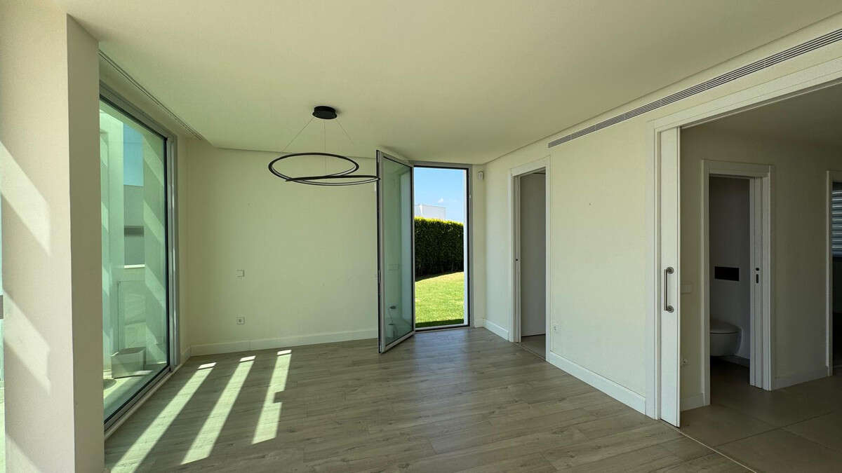 Town House for sale in La Finca, Sotogrande with 4 bedrooms, 3 bathrooms, 1 toilet and with orientation south/east, with communal swimming pool, private garage (2 parking spaces) and private garden. Regarding property dimensions, it has 230 m² built and 273 m² plot. Has the following facilities amenities near, fireplace, gym, security entrance, dining room, guest toilet, private terrace, living room, sea view, mountain view, golf view, underfloor heating (throughout), security shutters, laundry room, internet - wi-fi, electric blinds, fitted wardrobes, gated community, garden view, pool view, panoramic view, tennis / paddle court, doorman, glass doors, open plan kitchen, balcony, excellent condition, close to schools, surveillance cameras, pets allowed and individual a/c units.