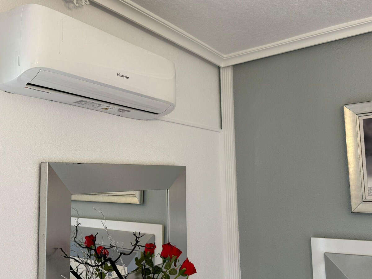 The separate, fully equipped kitchen offers a functional and practical space for everyday use. The property has two bedrooms, each with air conditioning, ensuring rest and coolness at any time of year. It also has two full bathrooms, designed for the comfort of all members of the family.