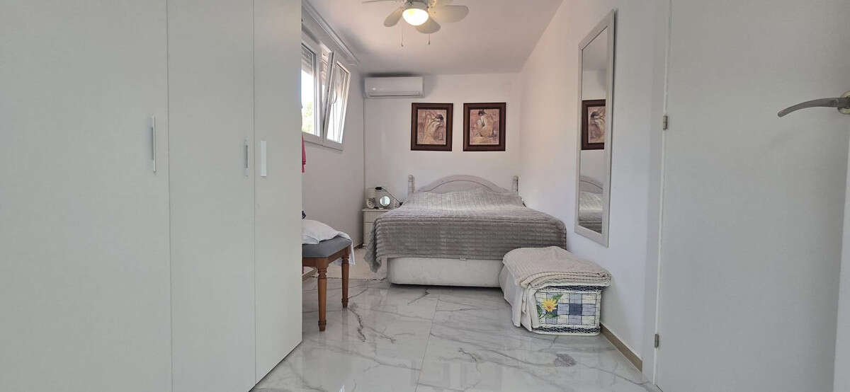 This is a two-story semi-detached house with a very comfortable layout. On the fully renovated ground floor, you will find a spacious living-dining room with open plan kitchen, one bedroom, a bathroom with shower and a covered porch with access to a private terrace, perfect for enjoying the Mediterranean climate. Upstairs, there are three bedrooms (one double and two singles) and a second bathroom.