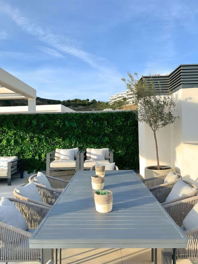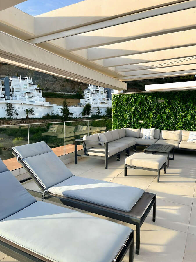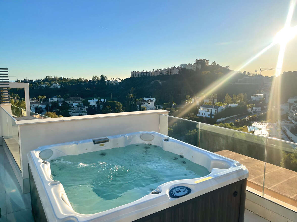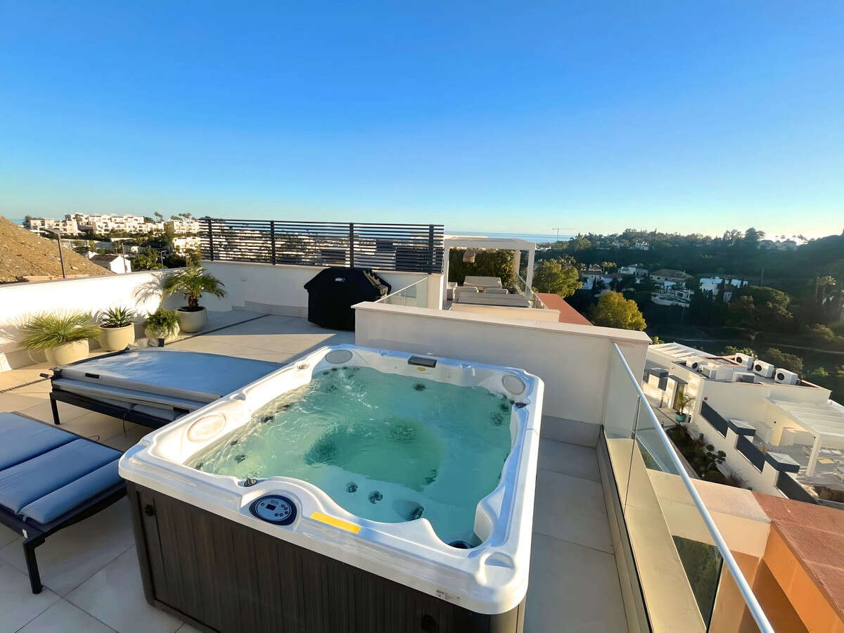 Set above La Quinta Golf Course and just minutes from Puerto Banús and San Pedro, this modern 3-bedroom, 2-bathroom penthouse offers nearly 200 m² of private outdoor space, including a stunning second-floor terrace with a Jacuzzi, dining, and lounge areas, all with breathtaking sea and landscape views.
