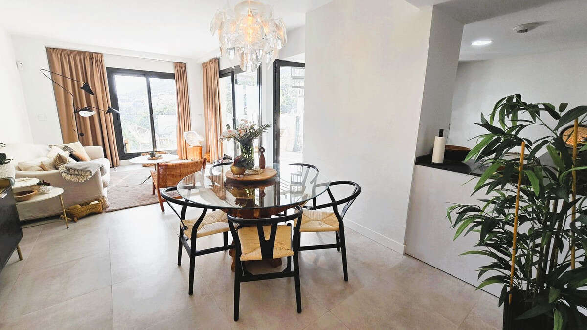 As you step into this beautifully presented Horizonte penthouse, the first impression is all about light, openness, and a refined modern aesthetic that instantly makes the space feel inviting. The layout has been designed with everyday comfort in mind, offering a seamless flow from the living area out to the spacious terrace, where the panoramic sea and mountain views create a constantly changing backdrop throughout the day. Thanks to the privileged south-to-west orientation, the penthouse captures sunshine from morning to sunset, enriching both the interior and exterior areas with natural warmth and brightness.