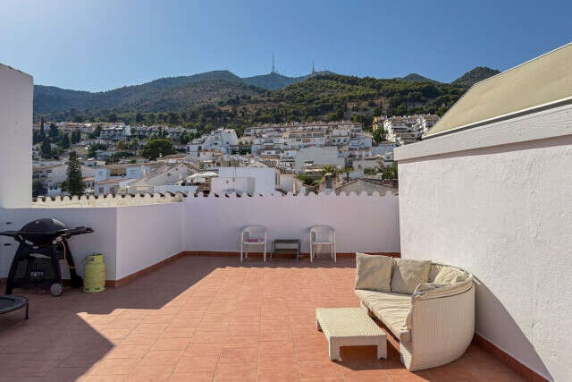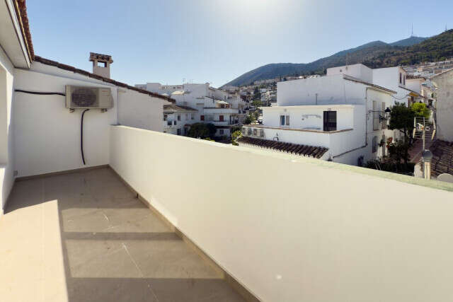 A stunning, refurbished 3 bed, 2 bath duplex penthouse in the heart of Benalmadena Pueblo. There are steps leading to the entrance of the apartment which is on the first and second floors of the building. All of the accommodation is on the first floor with stairs leading to the second floor where there is a large solarium of 60m2 with amazing panoramic views. The entrance is on a pedestrian street. The property is presented in immaculate order and is steps away from all the amenities of the pueblo. A must see property. There are no community fees payable on this apartment.
