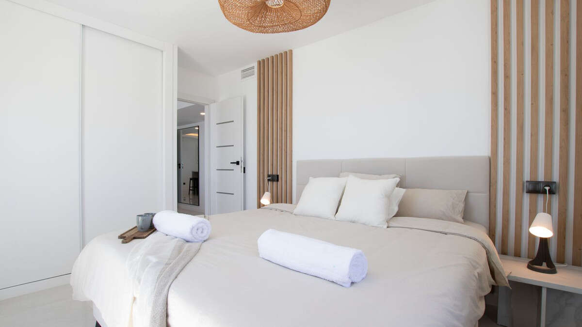 There are 3 bedrooms with fitted wardrobes, each bedroom has a window with sea views. There are 2 full bathrooms with shower trays, completely renovated with a minimalist style. There is no elevator, it is a second floor, once on the floor there are no stairs, the floor and the terrace are on the same level.