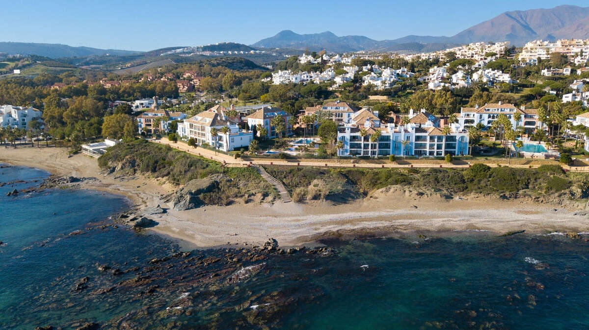 IMPRESSIVE PENTHOUSE ON THE FRONTLINE BEACH,WITH TOURIST LICENSE, with SPECTACULAR VIEWS OF THE SEA, THE BEACH, GIBRALTAR, AND AFRICA. Located in the beautiful Casares Bay, next to a protected historical area with an ancient Arab tower, within the lovely La Perla de la Bahía complex, designed to blend Andalusian and Arab styles. Surrounded by lush gardens, magnificent swimming pools (2 heated), a wide variety of decorative fountains, and relaxation areas designed for maximum enjoyment. Just 2 minutes on foot from 3 different beaches, 2 renowned restaurants, and the prestigious Finca Cortesín golf resort, awarded as the Best Golf Resort in Spain every year, ranked among the top 50 golf courses in the world, and host of the prestigious Solheim Cup in 2023, among others. Strategically located between Estepona and the charming Puerto de la Duquesa and the village of Sabinillas, all just a 5-minute drive away, offering access to a wide variety of shops, restaurants, leisure activities, and various golf courses. The gated community offers 24-hour security and video surveillance, ensuring peace of mind and safety. This property includes 4 parking spaces in the garage and 4 spacious storage rooms. In addition, it has a valid tourist license, which further enhances its appeal as an investment. A unique property that must be seen!
