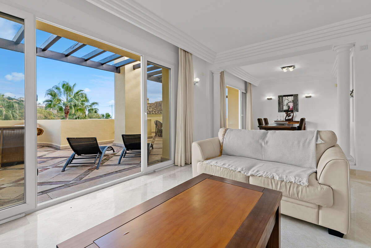 The terrace is mainly uncovered and offers several areas for outdoor dining, entertaining, and sunbathing, while enjoying open mountain views, including Los Reales, as well as some sea views.