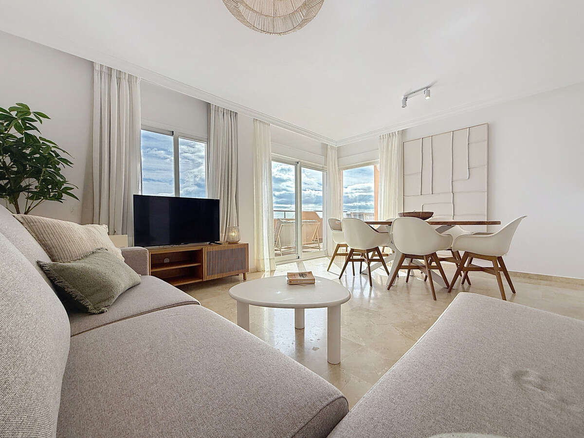 The fully renovated property stands out for its spacious layout and brightness. It features an entrance hall, a large living room opening onto a spacious south-facing terrace, which leads to a generous solarium, ideal for creating a true outdoor living space for relaxation, dining, and sunbathing.